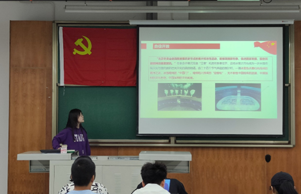 最后,主持人张雨晴同志对本次主题党日活动暨组织生活做出总结,她说:“今天的活动大家都很积极,并且分享的形式多样,内容丰富。希望大家在平时的学习生活中,多读有关党的书籍,丰富党的理论知识,树立正确的人生观、价值观,不忘入党初心,始终牢记时代赋予我们的责任。”