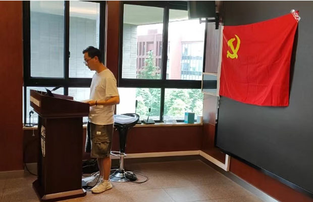 2022年8月26日下午16时00分,地学博士环境党支部在X4520教室召开预备党员接收大会。大会就发展对象刘妍同志接收为预备党员问题进行讨论。会议由党支部书记闵雪峰同志主持,支部党员及积极分子出席会议。会议通过线上与线下结合方式进行。