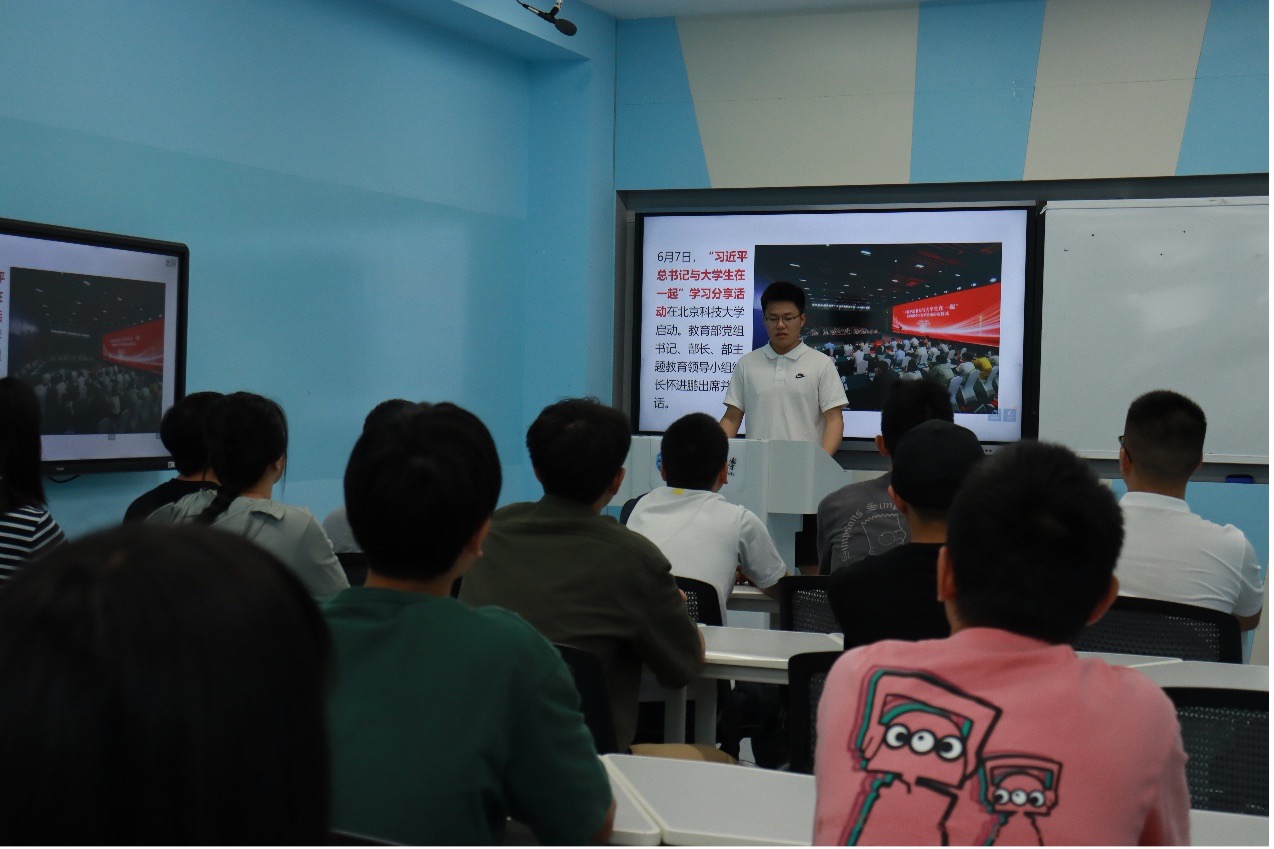 随后,刘翔同志与参会成员分享了教育部党组书记怀进鹏的讲话。在贯彻落实习近平总书记重要讲话精神的关键节点,结合正在开展的党内主题教育,深入开展学习分享活动,是深化用党的创新理论武装头脑的铸魂之举,是深切感悟新时代伟大成就里程碑意义、增强“四个自信”的培根之举,是深入实施“时代新人铸魂工程”、构建育人新生态的润心之举,有助于提高新时代大学生坚定理想信念的思想自觉、增强学生党员践行“两个维护”的政治自觉、激发学生党员担当作为的行动自觉。
