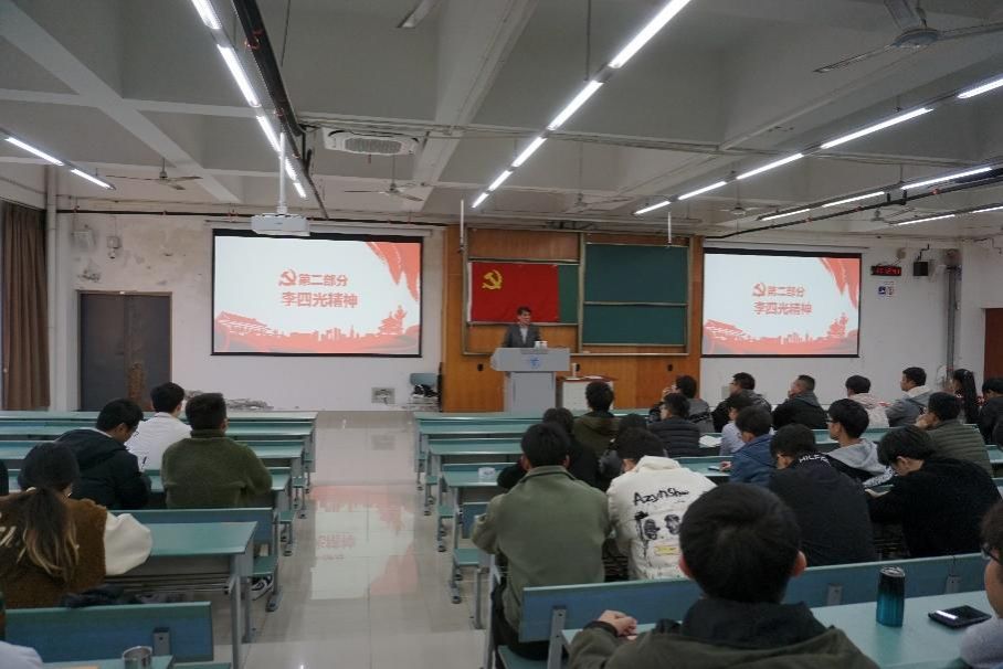 接下来,胡卸文教授讲述了李四光精神的内涵和意义。他从李四光的生平事迹和在地质学领域的重大贡献出发,结合自己的科研学习经历,鼓励同学们将李四光精神内化为自己的行动准则,要有敢于探索、敢于创新的精神,要有坚韧不拔的毅力,要有勇于挑战的勇气。李四光精神是我国地质工作者的宝贵精神财富,也是我们在新时代继续推进地质科学研究和实践的重要动力。