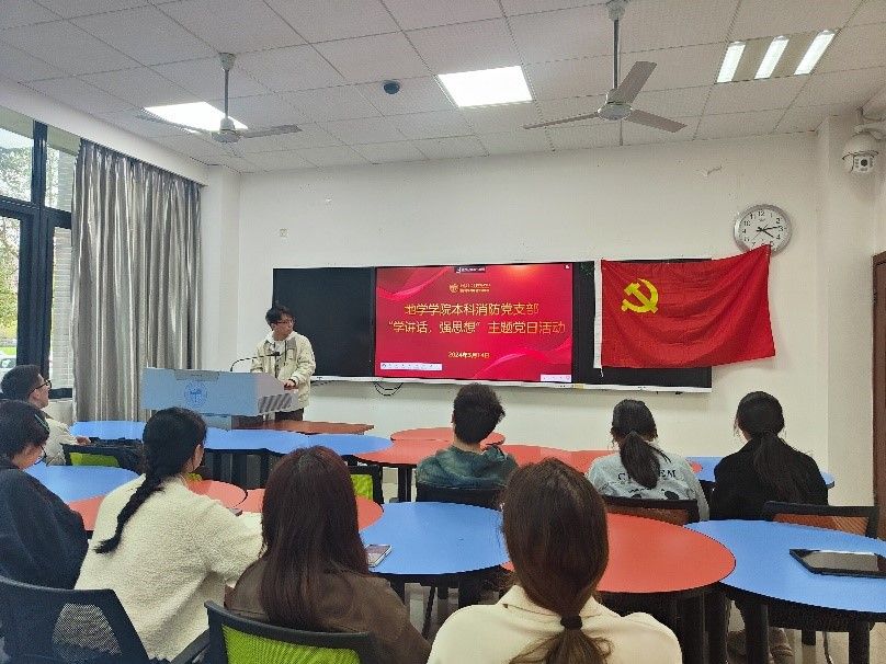 为深入学习贯彻习近平新时代中国特色社会主义思想和党的二十大精神,2024年3月14日,地学学院本科消防党支部在X4135教室顺利召开了本次主题党日活动。共同深入学习贯彻习近平总书记在中共中央政治局第十一次集体学习时的重要讲话精神并学习了《党史学习教育工作条例》以及《厚植爱国情怀,培育时代新人》文章。支部全体党员均参与本次活动,活动由党支部书记邹红宇同志主持。