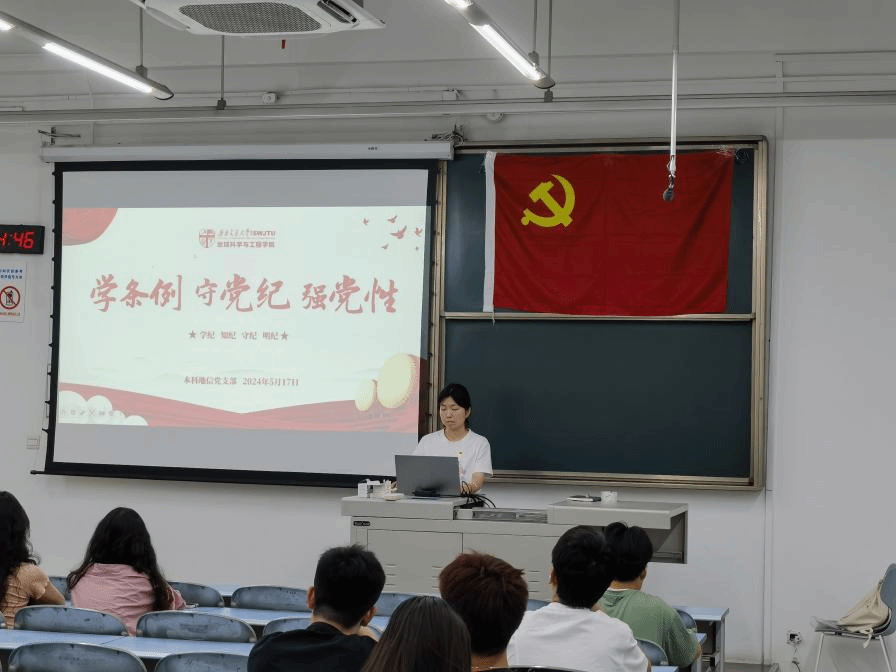 为组织开展好党纪学习教育工作,传承党的光荣传统和优良作风,激发共产党员崇高理想追求,引导党员干部学纪、知纪、明纪、守纪, 2024年5月17日晚19点30分,本科地信党支部在X2331开展“学条例 守党纪 强党性”读书交流会主题党日活动,本次活动由党支部书记李慧同志主持。