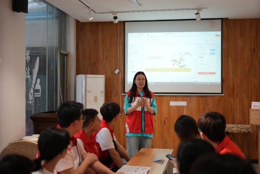 临近小满,本次公益课堂主题为二十四节气,主要分为知识分享、游戏互动和手工制作三个部分。活动伊始,两位同学给孩子们分享了关于二十四节气的知识,通过生动的图片分析各种节气现象,向孩子们介绍了二十四节气的由来、特点和习俗。
