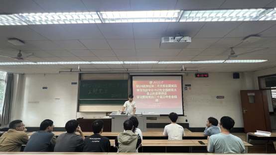 2024年10月17日下午,在J4219教室,开展了以“学习习近平总书记在全国教育大会上的重要讲话、学习贯彻党的二十届三中全会精神”为主题的党日活动。