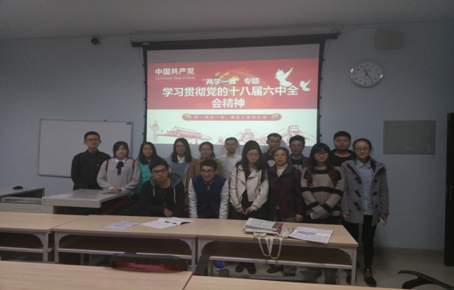 犀浦校区X9135教室开展了“学习贯彻党的十八届六中全会精神”专题教育活动。一班党支部书记王铭庆组织开展了本次会议。三班党支部书记赵雪负责记录和照相。支部的指导老师冯丽梅老师出席了本次会议。