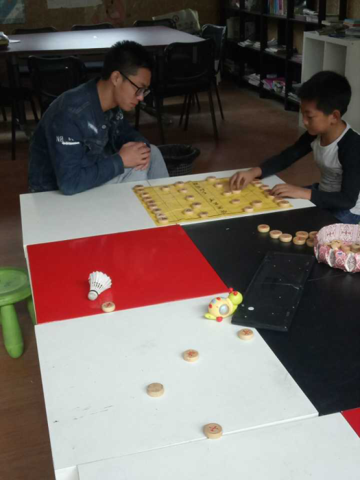 11月6日上午,确保小朋友们完成作业的前提下,我们带领着他们学下棋。主要是教他们学下五子棋和象棋。让他们明白下棋考验的是一个耐心的过程,一步一步都会有讲究,每一步都要考虑并告诉他们君子不能悔棋,这点对于指引他们漫长人生是很重要的,带领他们细心思考问题,顾全大局,周全人生,帮组他们避免很多人生错误。在下棋这个脑力与娱乐交互的过程,孩子们一步一步成长,下棋的技术也有了很大提高。中午孩子们走了以后,我们认真打扫了基地的卫生,一切又恢复到当初到来时的样子。带着对基地、对彭山市磁峰镇孩子们的不舍之情,我们坐上了归程的高铁。
