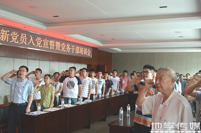 在X4520举行了新党员入党宣誓暨党务干部培训会。参加本次会议的嘉宾有地学学院党务副书记傅尤刚老师、党委组织员刘冠军、冯丽梅老师、教工学工组织部书记邓思然老师、14级辅导员及支部书记杨都强老师、13级辅导员田凤晓老师。