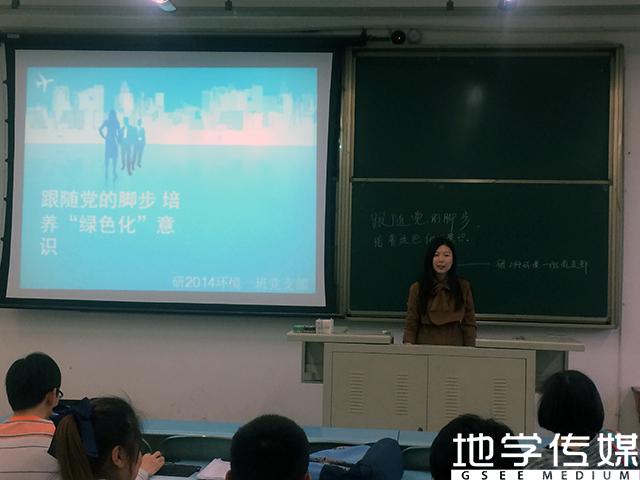 2015年4月17日 星期五晚上19:00—21:30,由地球科学与环境工程学院14级环境一班举办的学生党支部特色活动在X2527举行。这次党支部活动的主题围绕着“跟随党的脚步 培养“绿色化”意识”,主要针对最近习近平主席提出的意识形态的重要讲话和“绿色化”的新提法进行组织学习、讨论;通过观看最近影响全国的《穹顶之下》,让党员们特别是环境工程的同学对中国环境情况有一个新的认识并进行讨论,培养党员和群众对环境污染正确的看法。本次参加活动的有环境1班的16位党员和少数群众代表。