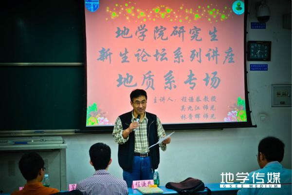 9月26日晚7点半,地球科学与环境工程学院研究生论谈系列讲座地质系专场在X2522教室如期举行,本次讲座的主讲老师为地质系博士生导师程谦恭教授,2011级博士研究生吴九江学长以及2011级研究生林晋辉学长也到场进行了交流。本讲座旨在于帮助2013级研究生新生了解就业去向、学习方法和论文撰写要点等方面的内容。