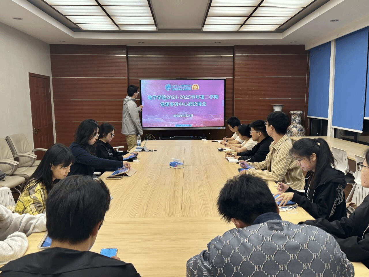 2025年4月25日晚,地学学院党建事务中心部长例会在X4531准时召开。本次会议旨在总结前期工作情况,探讨解决现存问题,并对未来工作进行规划部署。会议议程涵盖了前期工作陈述、未来工作规划、日常工作交流以及指导老师的建议与总结。