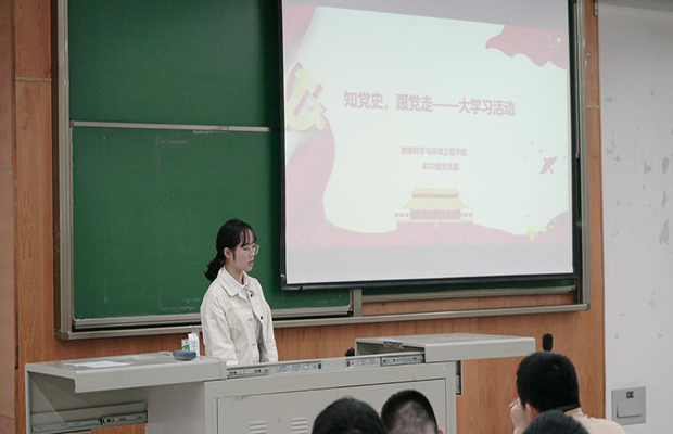 活动第一部分,徐惟微带领大家重温了四史知识并着重讲解了党史部分内容。欲知大道,必先为史。通过观看视频、交流互动的方式,大家从深厚的历史中感悟到红色政权、新中国、中国特色社会主义来之不易,更深刻地理解了中国共产党的初心和使命。其中,地质2班学委黄世宁发言道“历史厚重,学党史有利于积累,更好的发展,知晓中国共产党的领导是中国特色社会主义最本质特征”。