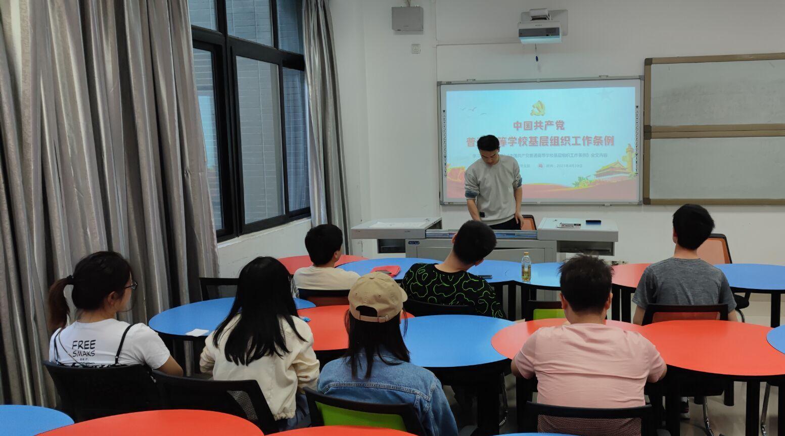 4月30日19点30分,地学学院研19级测绘2班党支部于X4137教室召开全体党员大会,主要学习修订后的《中国共产党普通高等学校基层组织工作条例》(以下简称《条例》)以及举行“积极分子推优入党答辩”大会。大会由王所智同志组织召开,支部全体党员与积极分子参加。