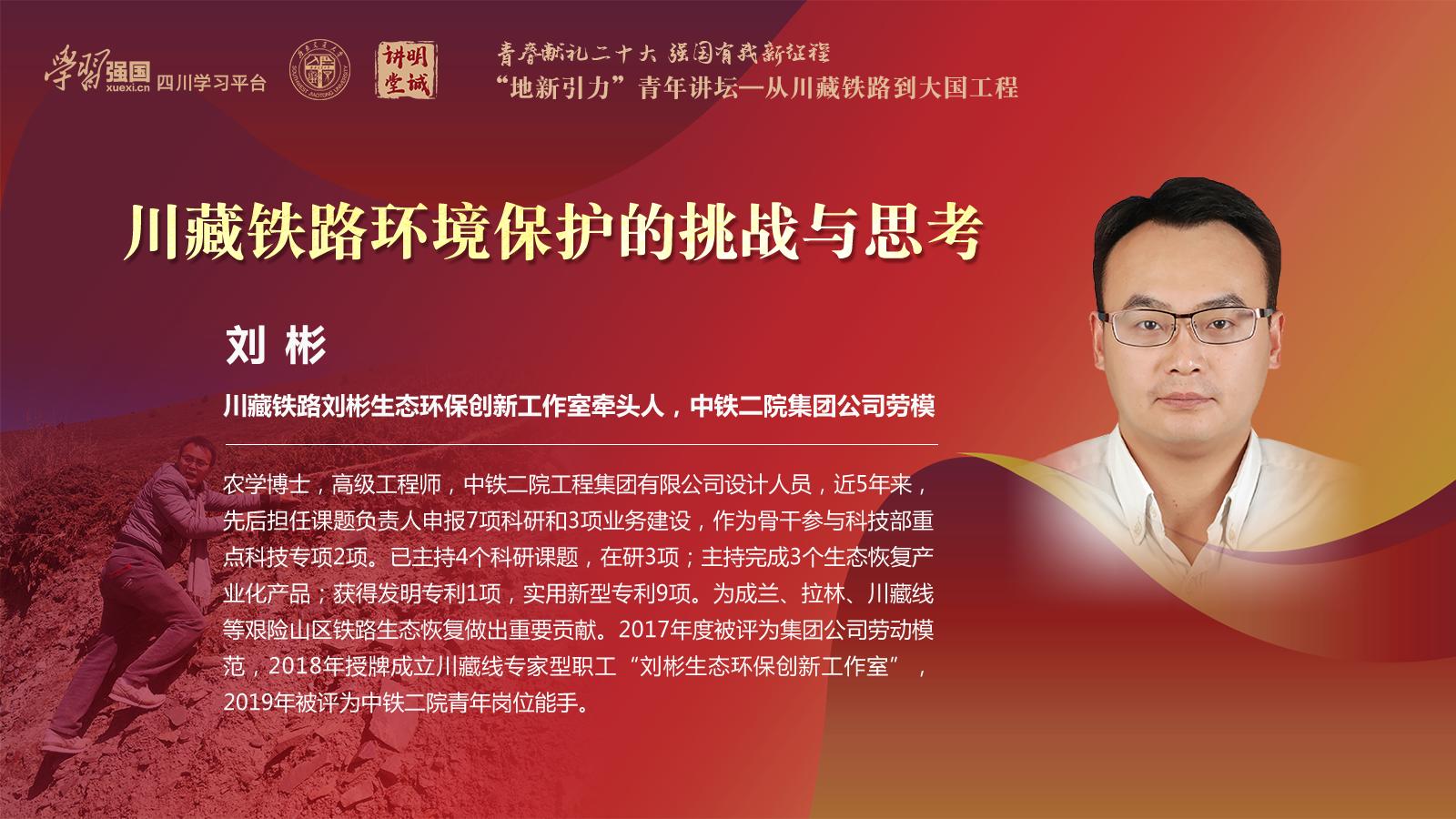 简介:川藏铁路刘彬生态环保创新工作室牵头人,中铁二院集团公司劳模,农学博士,高级工程师,中铁二院工程集团有限公司设计人员。近5年来,先后担任课题负责人申报7项科研和3项业务建设,作为骨干参与科技部重点科技专项2项。已主持4个科研课题,在研3项;主持完成3个生态恢复产业化产品;获得发明专利1项,实用新型专利9项。为成兰、拉林、川藏线等艰险山区铁路生态恢复做出重要贡献。2017年度被评为集团公司劳动模范,2018年授牌成立川藏线专家型职工“刘彬生态环保创新工作室”,2019年被评为中铁二院青年岗位能手。