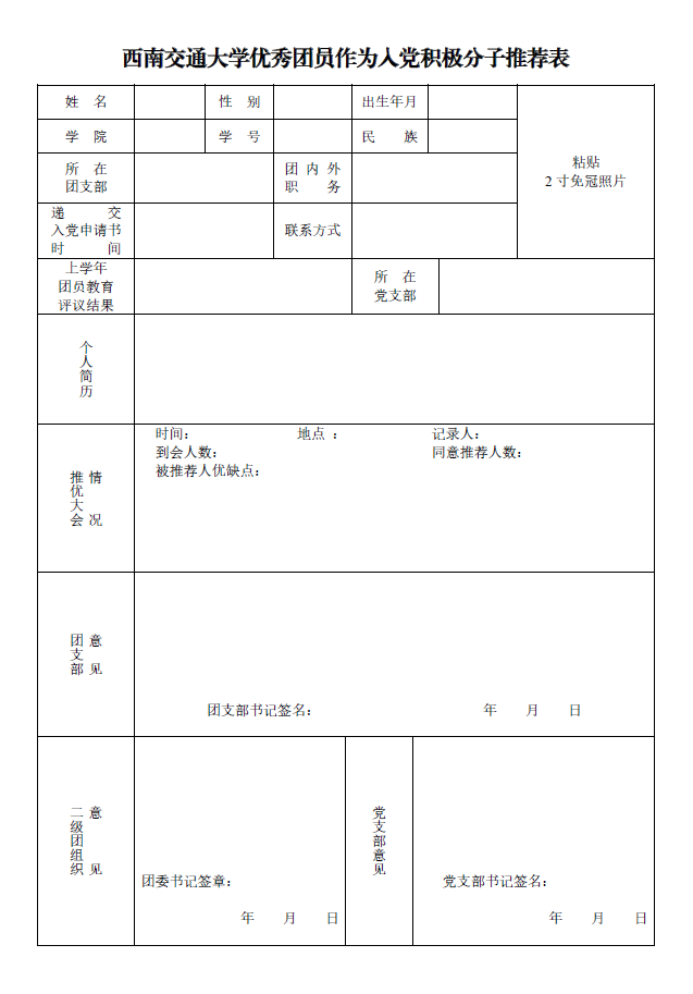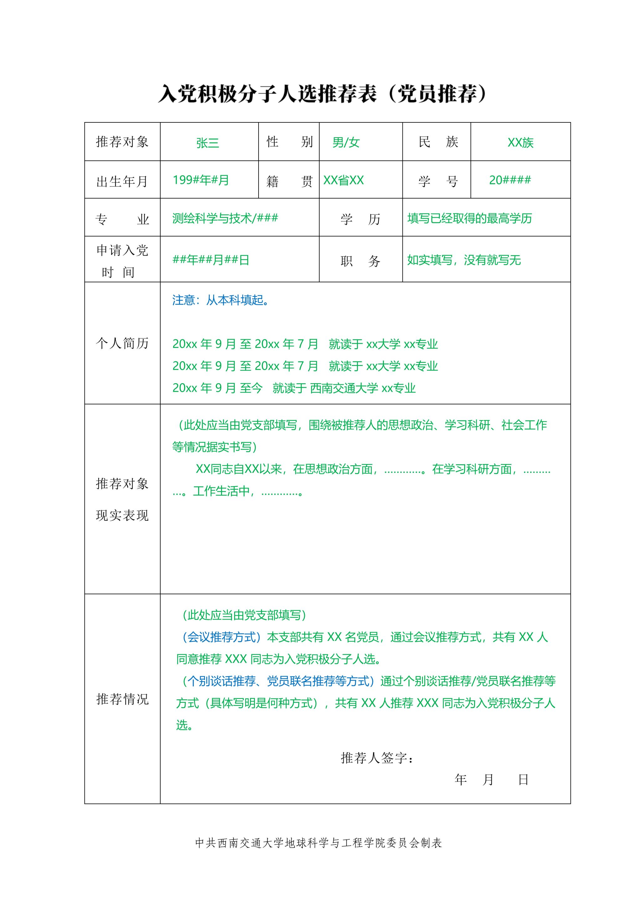 部分同学在推荐为入党积极分子时已年满28周岁(多见于博士党支部或教工党支部),自动退出中国共产主义青年团,无法通过团支部完成团内推优。此类同学需下载入党积极分子人选推荐表(党员推荐),采用党支部召开会议推荐或个别谈话推荐或党员联名推荐的方式,由至少2名中共党员签字推荐,与同期团内推优入党积极分子人选一起由党支部召开支部委员会或支部党员大会接收。