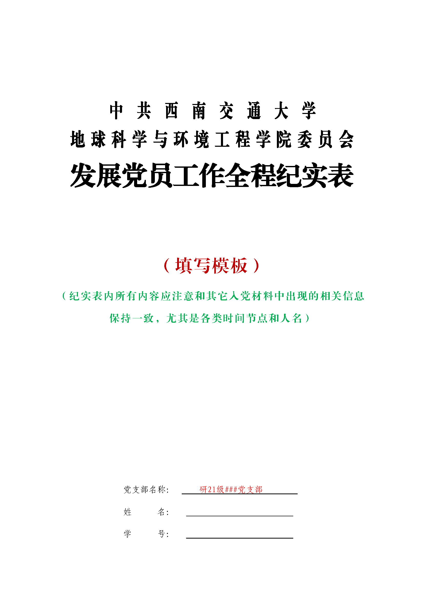 (一般仅有研究生新生预备党员使用此版本)