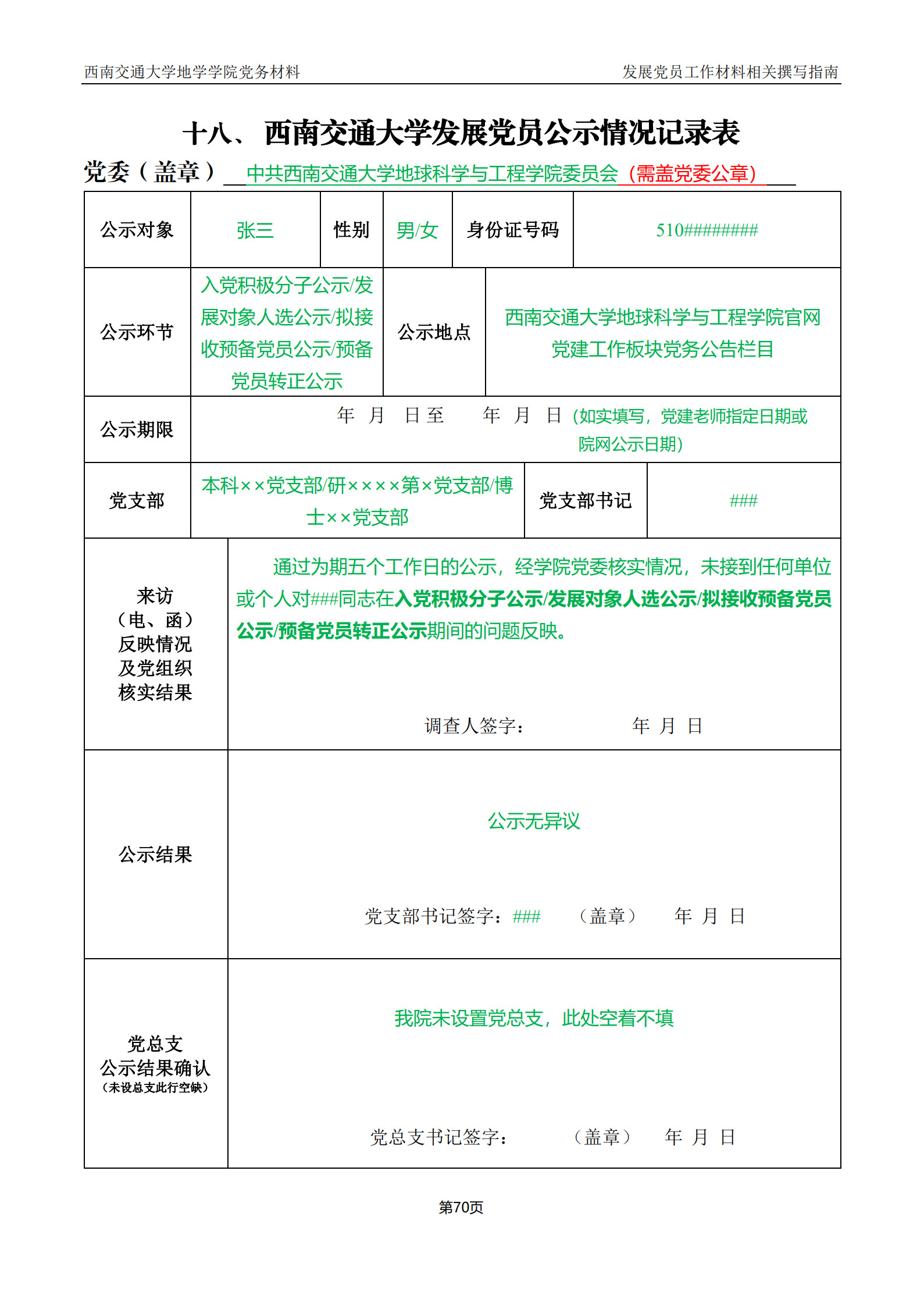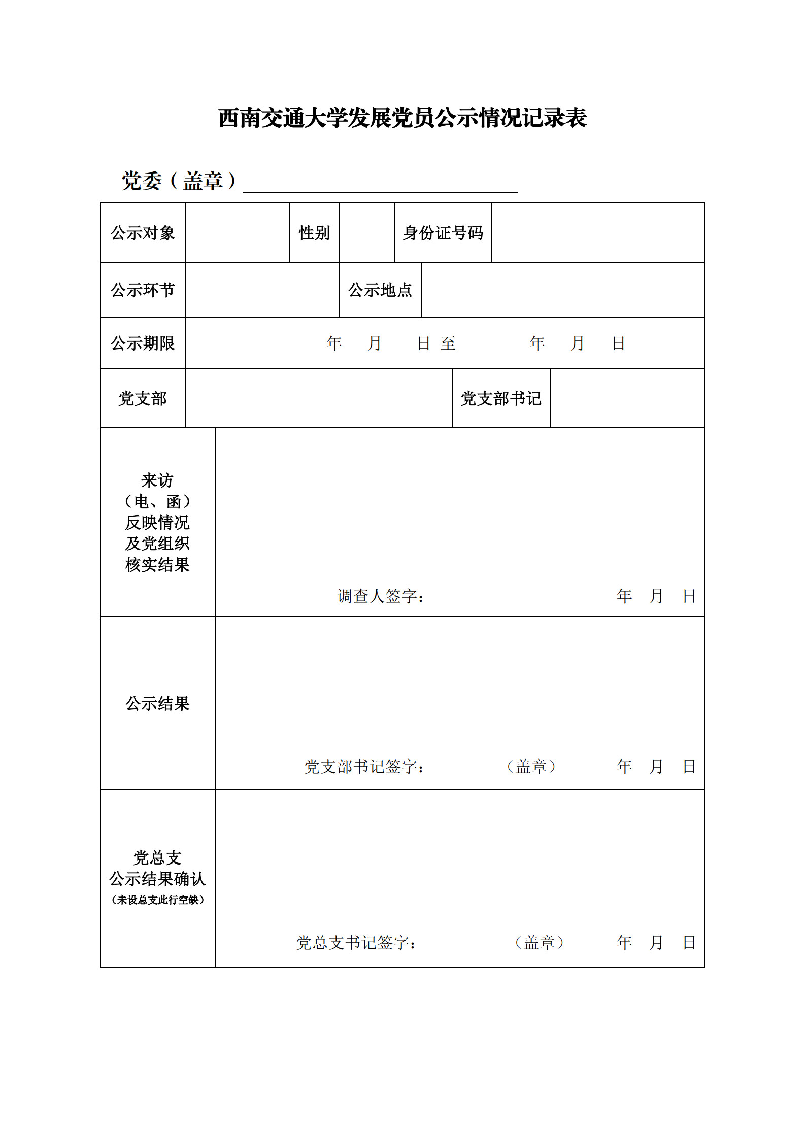 关于发展党员公示情况记录表上党委、党委盖章、公示地点应当写 JVID