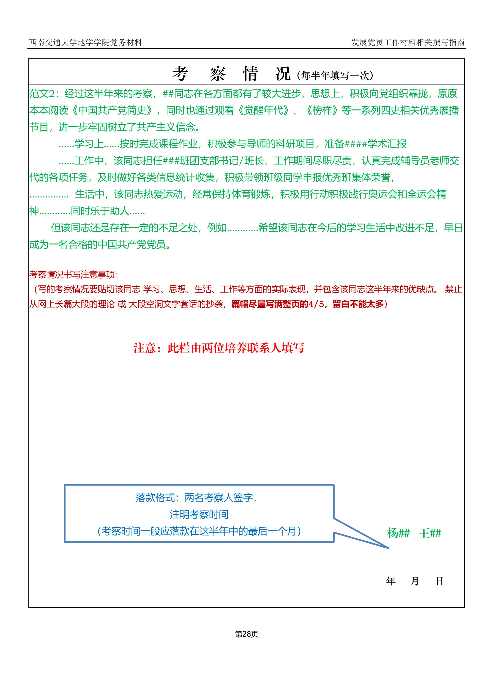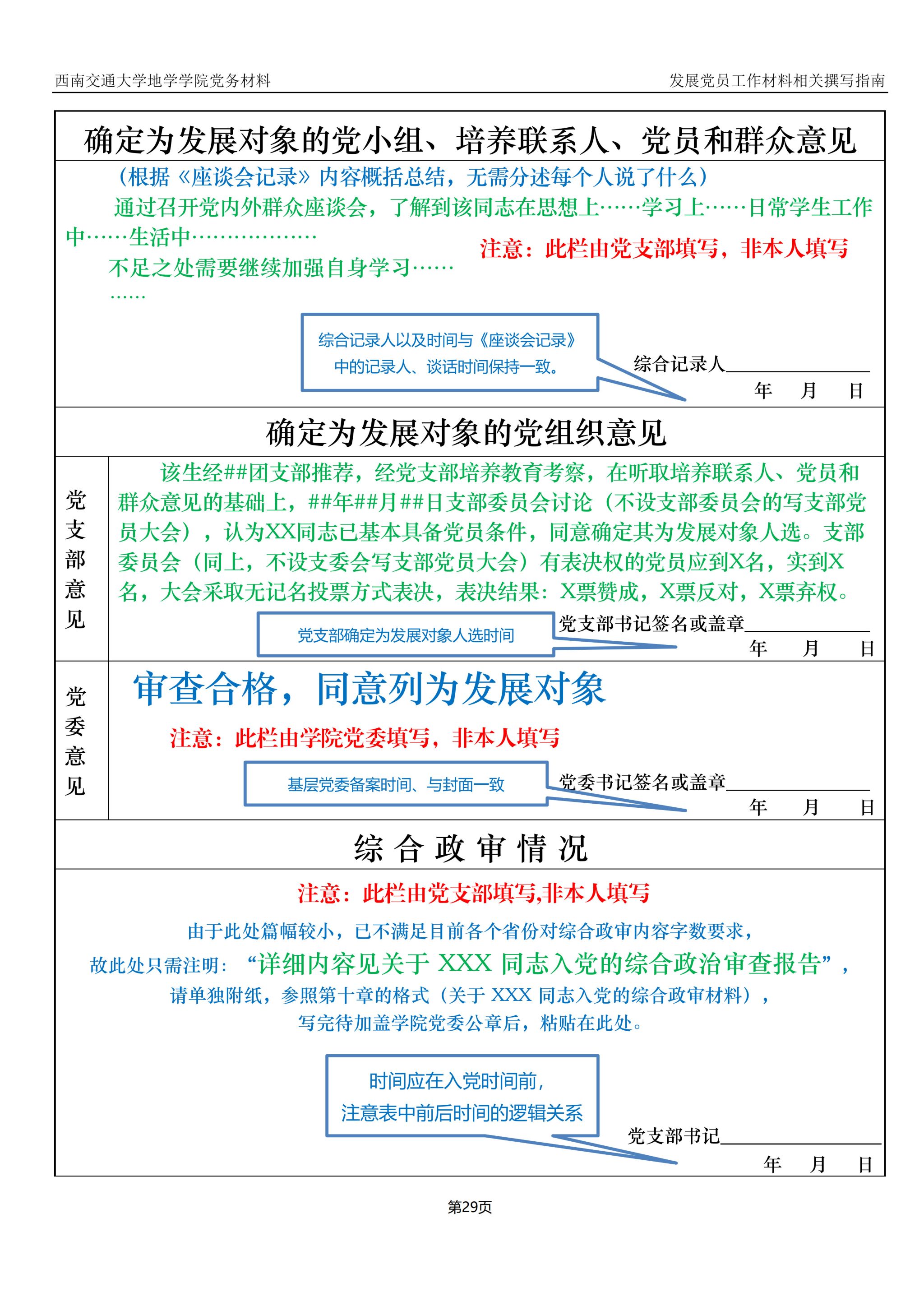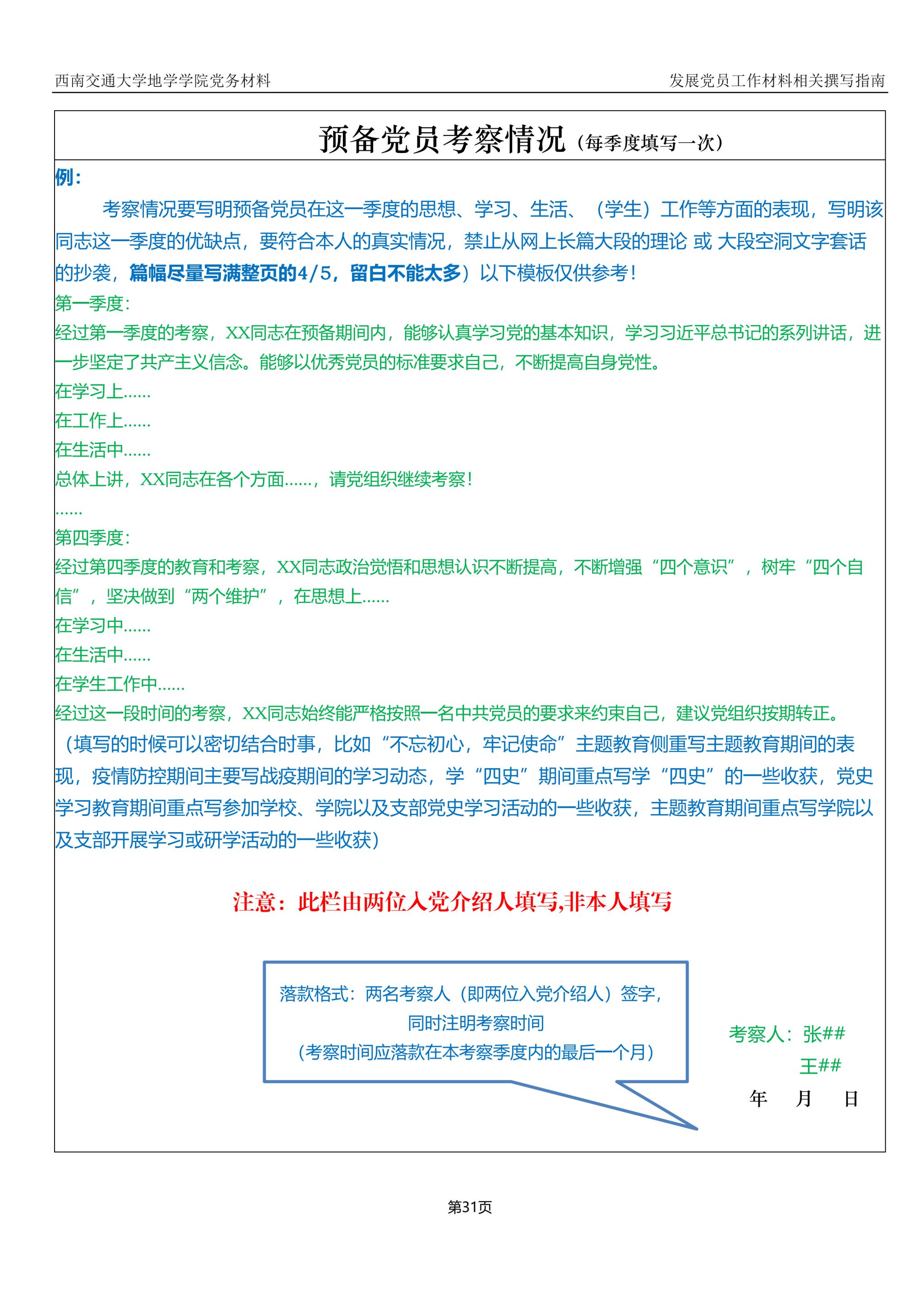 入党积极分子、发展对象、预备党员培养教育考察登记表撰写指南: