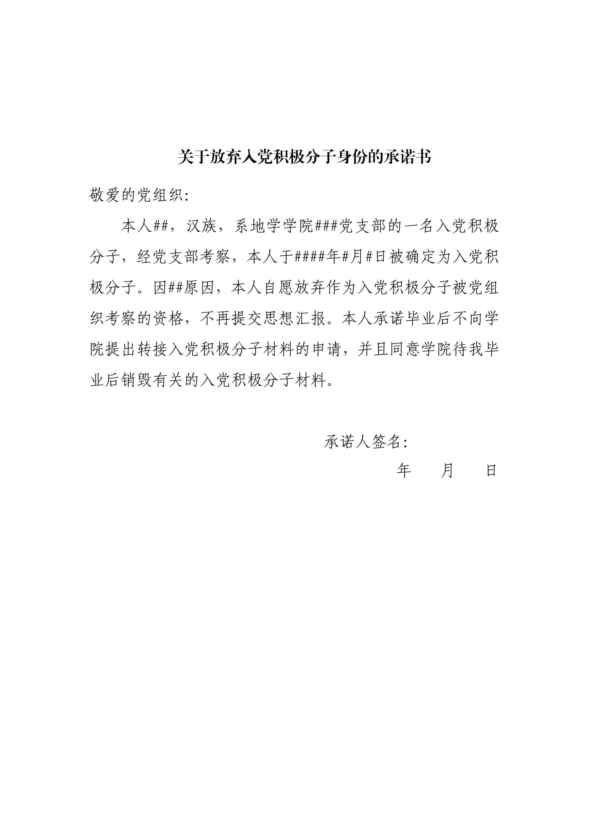 (3)关于放弃入党积极分子身份的承诺书样例: