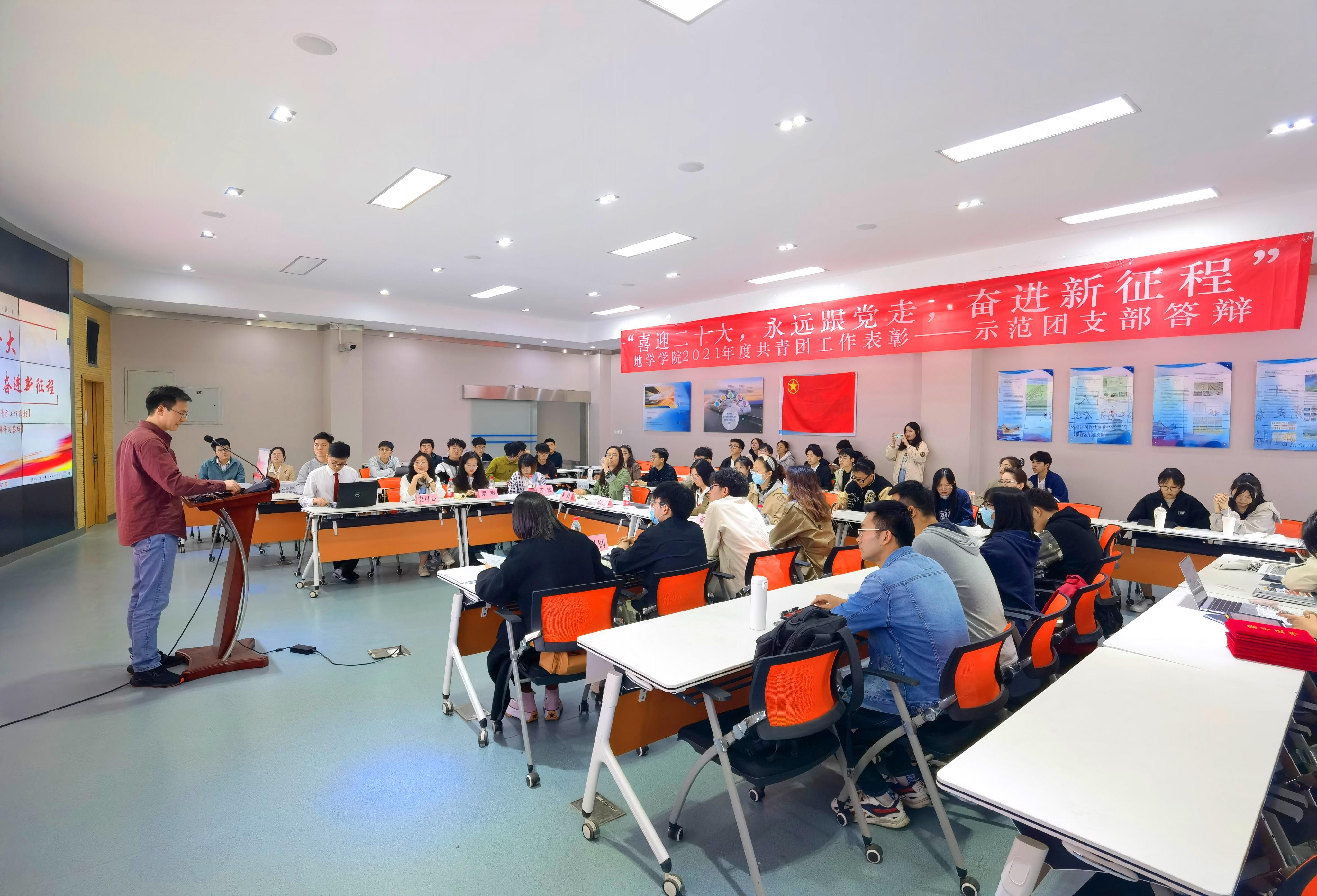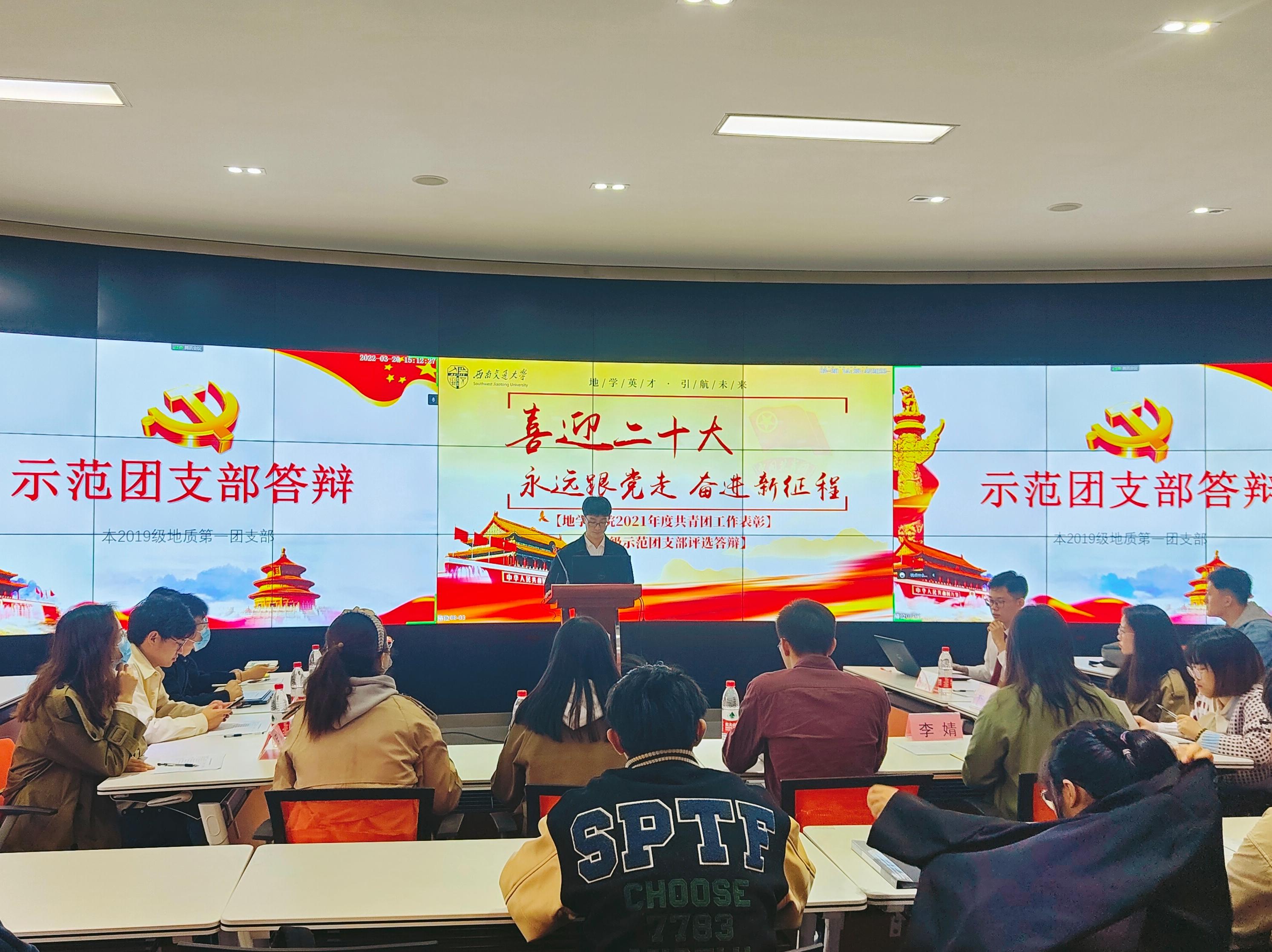 为加强团员政治教育和青年思想政治引领,提高团支部开展基础团务工作积极性,营造团支部内精勤求学的优良学风,地学学院团委于2022年3月20日在犀浦校区X4243教室举行2021年度院级示范团支部答辩会,答辩会采用线上加线下相结合的方式。地球科学与环境工程学院团委书记杨都强,院团委副书记翟琦、李婧、董可,学生园区与事务中心指导老师王琼,学习与科创中心指导老师梁爽,青年志愿者协会指导老师罗然,团建中心指导老师赵瑞涵,学生党建工作老师刘礼钊、史可心出席并担任评委,2018级、2019级和2020级本科生及研究生共10个团支部参与答辩。本次答辩会由李宝贤主持。