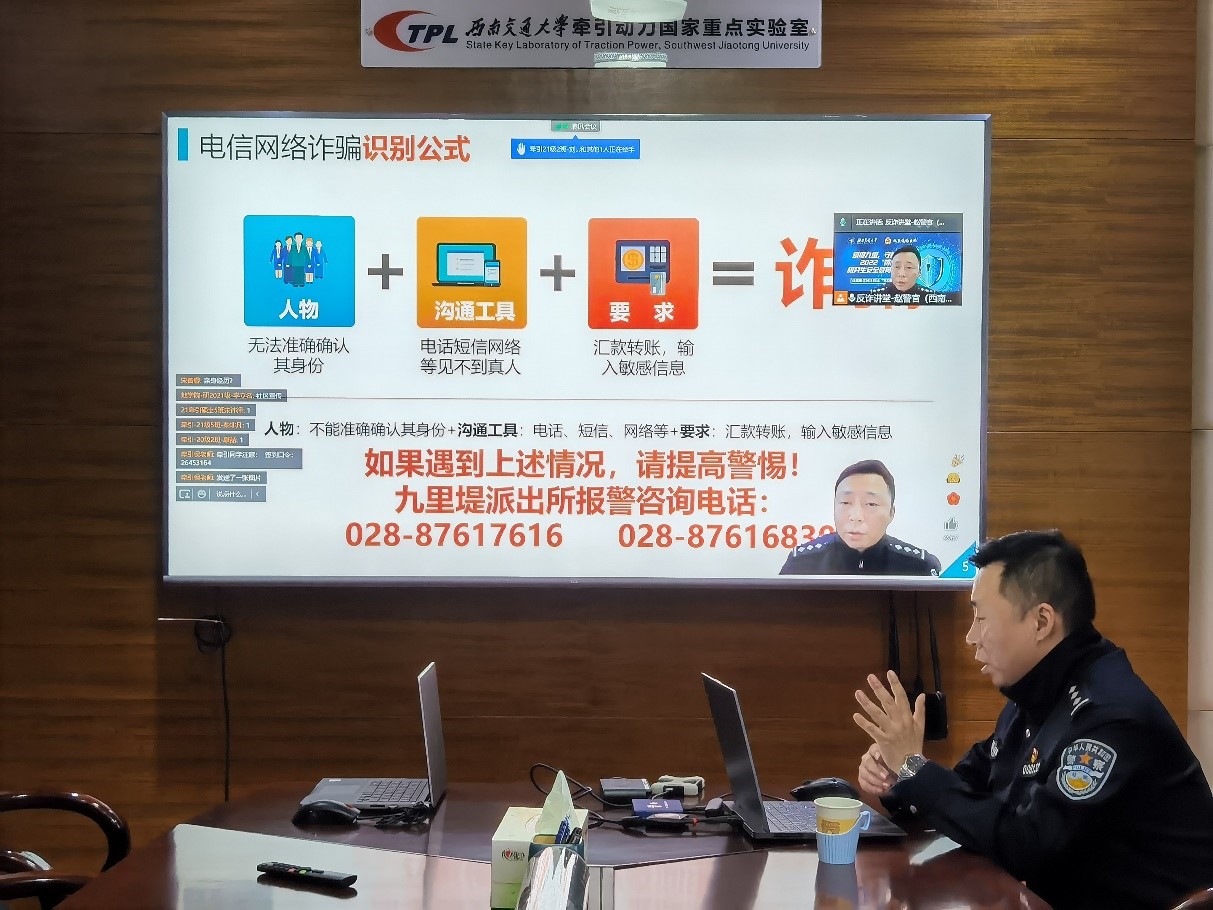 正值2022年“铸盾”研究生安全教育月,为提高研究生识别、防范诈骗的能力,增强同学们的反诈意识,3月30日下午15:00,地学学院联合牵引动力实验室、建筑学院、交运学院共同举办了“你我同心 反诈同行”——反诈防骗教育“专题讲座”。根据疫情防控需要,本次讲座通过腾讯会议线上召开,特邀九里堤派出所赵磊警官担任主讲人,地学学院全院研究生参加。