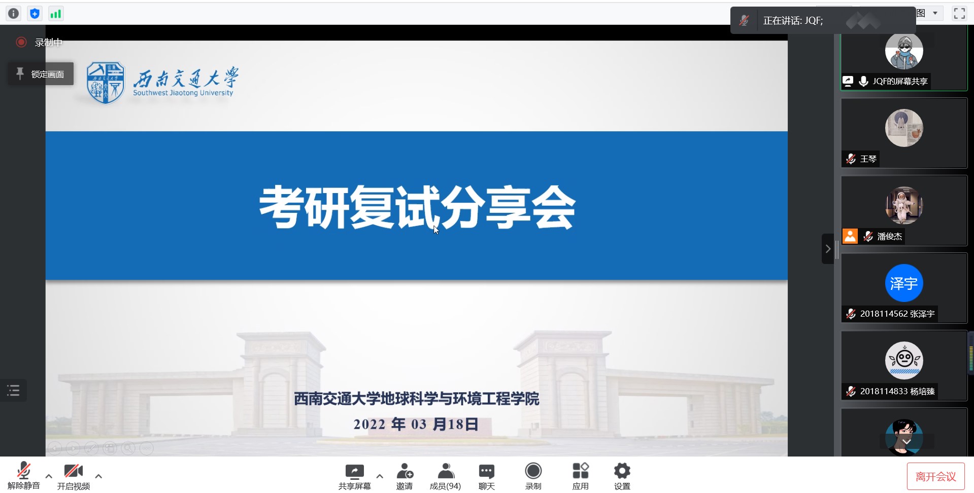 地学学院研究生会于2022年3月18日在腾讯会议成功举行了考研复试经验分享会,本次分享会面向2022届预报考JVID