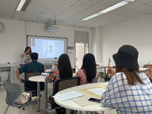 其次,大学生书画协会九里分会的同学对书画协会进行了简单的介绍,并带领大家一起学习毛笔字书法的相关知识,包括握笔姿势、笔划书写方式等。在同学们正式开始写作前,书画协会的同学线给大家进行现场教学,演示了如何正确握笔,并示范如何用毛笔写出规整的笔划。