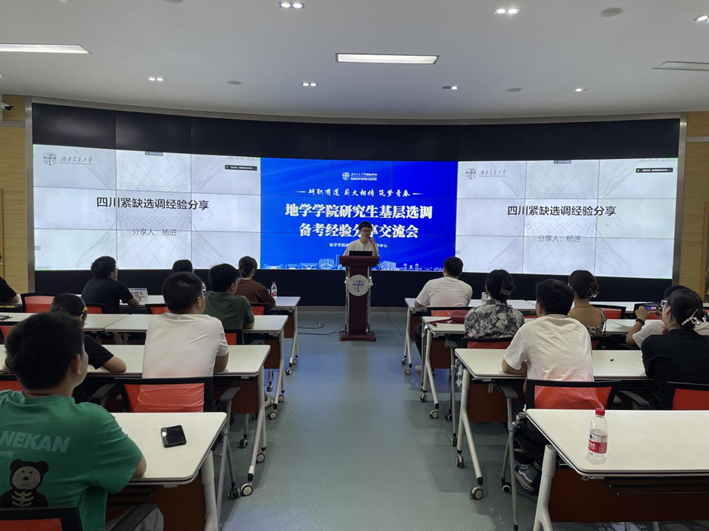 值此全党深入开展学习贯彻习近平新时代中国特色社会主义思想主题教育之际,为响应习近平总书记对青年大学生的殷切期望,鼓励青年学生投身基层、报效祖国,同时发挥高年级党员的“传帮带”作用。2023年6月7日14时,地学学院在X4243会议室举行了研究生基层选调备考经验分享交流会。本次经验分享交流会邀请了地学学院2020级地质、环境、土木水利专业硕士研究生分享自己在选调备考中积累的经验和方法,通过深入分析选调生、考公、人才引进等就业情况,旨在为院内研究生未来发展和工作选择引航指路。本次活动由学院研21级辅导员文强主持,院内21级、22级硕士参与。