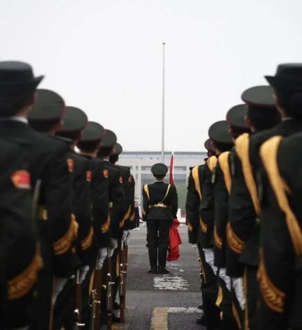 上午8时整,仪式开始,国旗队排着整齐的队列,迈着铿锵的步伐,护送着五星红旗走向旗杆。随着《义勇军进行曲》的雄壮的旋律,鲜艳的五星红旗在秋风中高高飘扬,全体师生向国旗行注目礼,高唱国歌,表达对祖国母亲热忱的祝福和最清澈的爱。