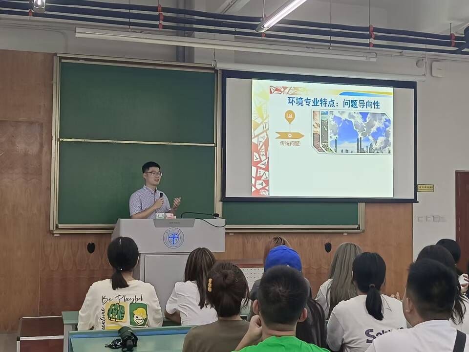 消防专业的林鹏老师和环境专业的曾卓老师为环境大类新生介绍了专业特色和未来的两大发展方向,毕业于环境专业的辅导员黄泳桦老师则通过自己的学习经历和职业选择为新生们解答疑惑。
