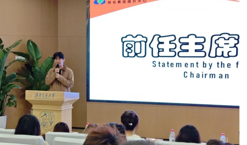 随后 ,前任主席代表李旭发表了致辞。前主席简单总结上一学年的工作,对新任主席团成员送来祝贺,并希望未来综合素质提升中心在大家的共同努力下取得更好的发展。