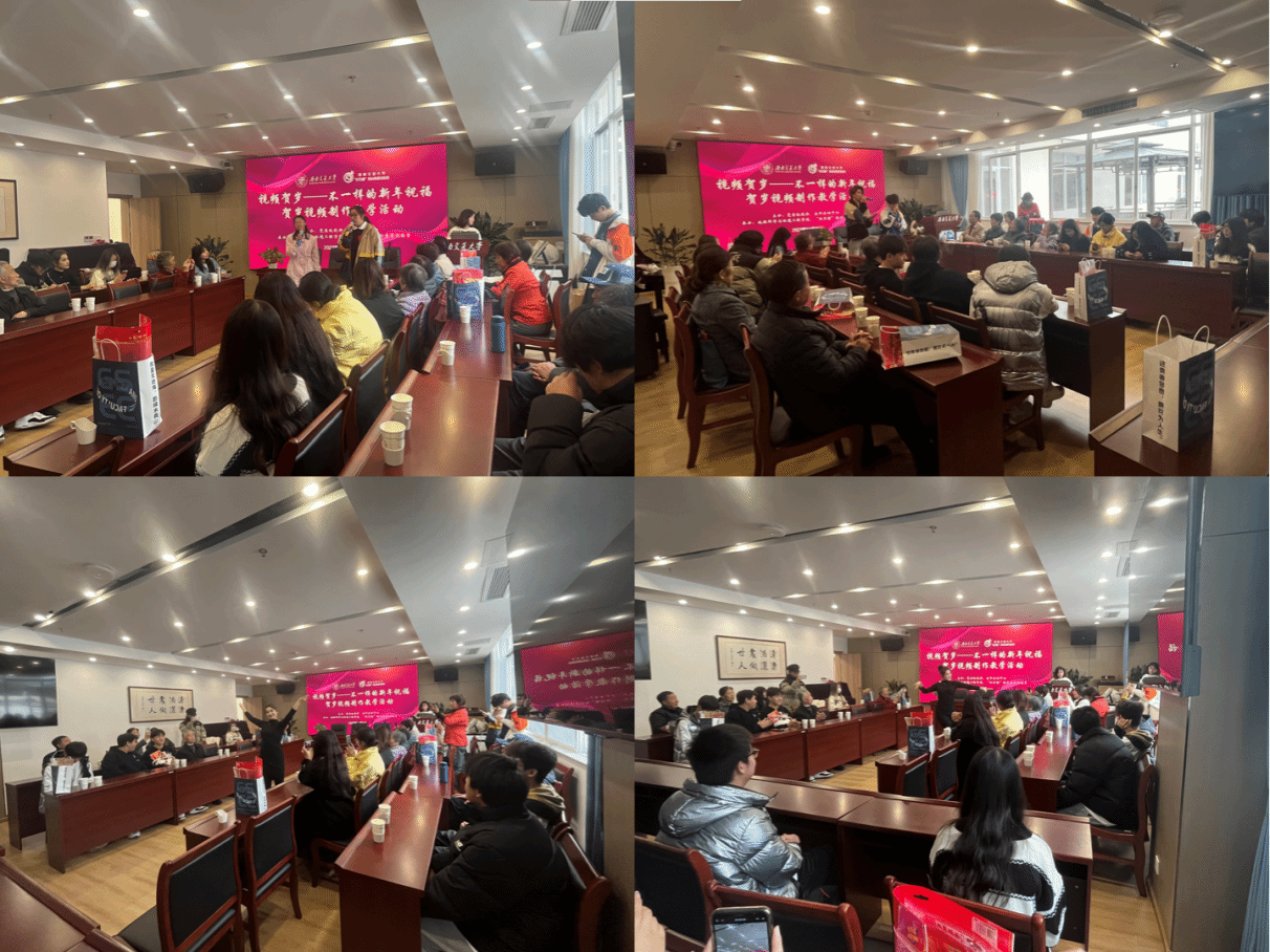 犀浦校区五食堂三楼老年中心开展了“视频贺岁——不一样的新年祝福”贺岁视频制作教学志愿活动。