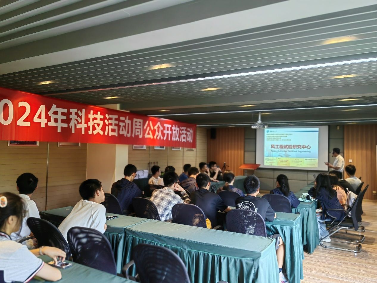 接下来,西南大学附属中学师生前往XNJD-3风洞实验室进行参观学习。风工程试验研究中心李志国老师对风洞实验室作出了简单介绍,阐明其对于土木防风领域重要性。并带领同学们进入到风洞实验室之中。使大家切身感受“理论与实验、实验与应用”相结合的魅力。