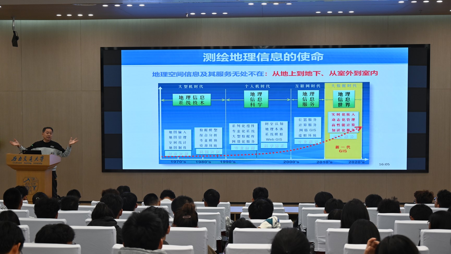 10月14日下午2点,地学学院在图书馆二号报告厅教室成功举办了测绘类专业新生认知教育大会。活动由2024级本科辅导员陈荩娜主持,朱庆教授担任主讲人,测绘类新生辅导员姜茜及全体2024级测绘类专业新生参加。