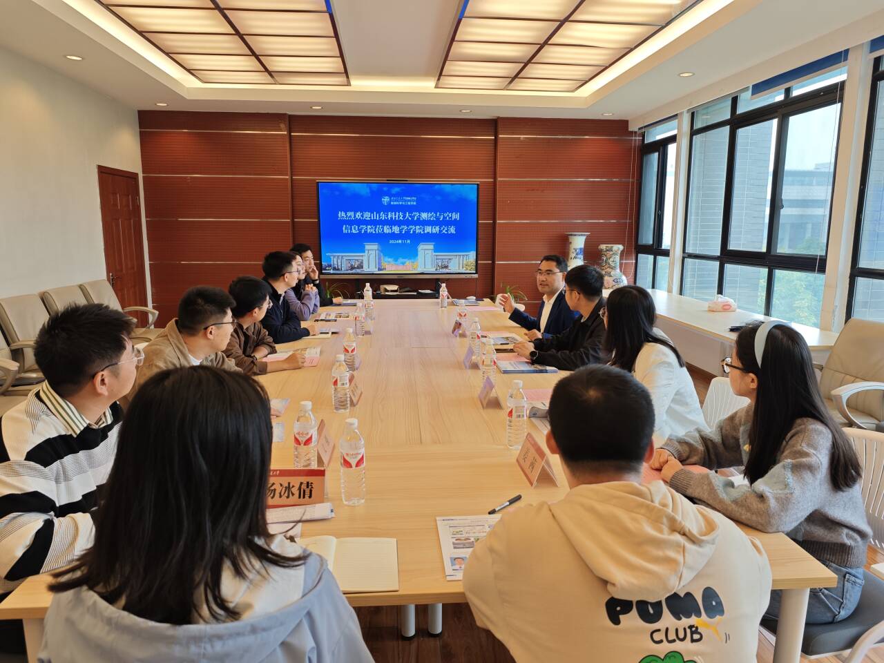 的悠久历史、发展思路、管理体系、师资队伍、人才培养及学生工作等多个方面,对地学学院的建设与发展情况进行了全面介绍。他指出,学院在对外合作方面与山东科技大学测绘与空间信息学院的国际化交流合作存在诸多相似之处,学院坚持“人才强院战略”和“国际化战略”,秉持“三全育人”理念,致力于全面提升地学人才培养水平,创建了“地心引力”“地学匠心”“地新引力”三大活动品牌以推动学院发展,并取得了显著成效。