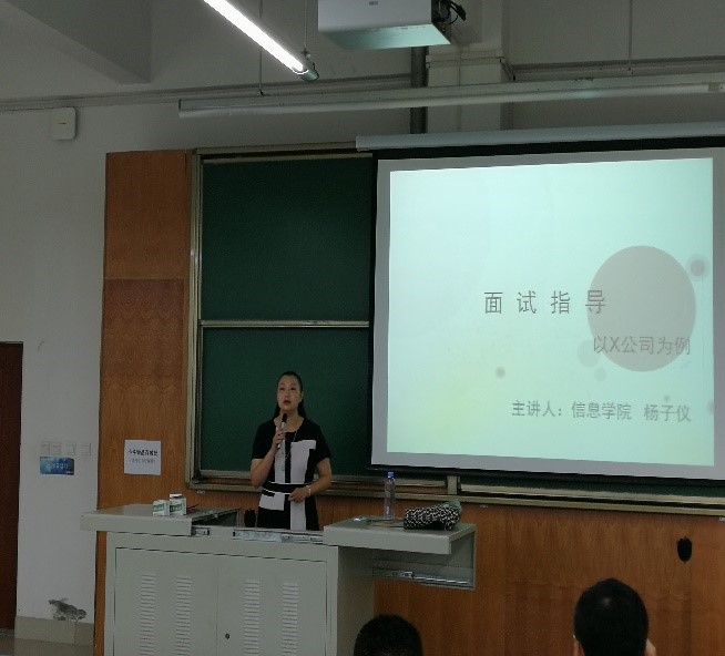 信息学院教师、全球职业规划师杨子仪导师前来为地院学子分享面试经验与技巧。