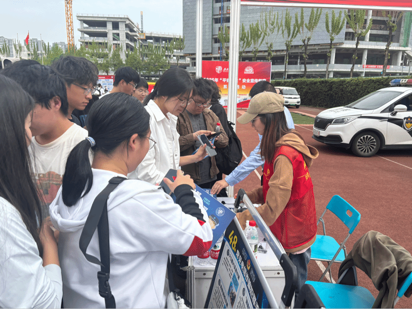 此次活动通过 “沉浸式科普➕趣味实践” 的创新模式,为全校师生呈上了一堂生动鲜活的安全教育公开课。活动现场,志愿者团队采用 “定点服务➕动态保障” 的分工模式,被细致划分为三大职能组。主题解说组的 40 名志愿者,分成 10 个4人小队,分别驻守在 “国家安全知识问答区”“反诈骗展区”“烟雾逃生体验区” 等安全主题展位前。他们借助图文展板、情景问答、道具演示等多种形式,深入浅出地为师生讲解安全知识,同时积极引导参与者完成打卡集章任务。