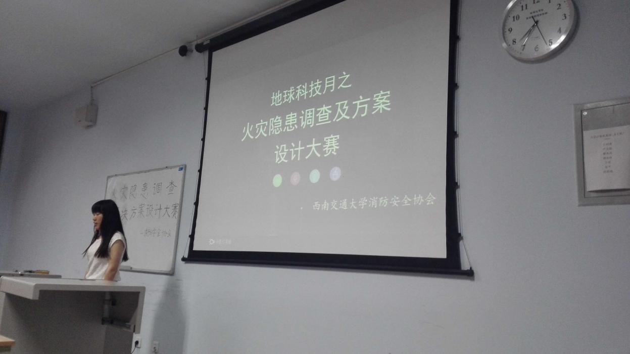 同学的消防安全隐患意识,丰富动手实践的能力,锻炼同学们利用专业知识解决现实问题的能力,消防安全协会借“地学科技月”之际,于2016年5月12日晚在X9350举办“火灾隐患调查及解决方案设计大赛”赛前宣讲会。
