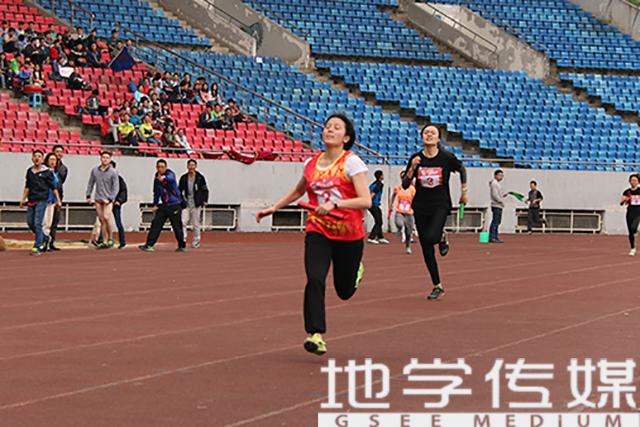 女教职员工选手依实力竞技,以1:08.42的好成绩取得教工甲A女子4×100接力赛第四名的佳绩。