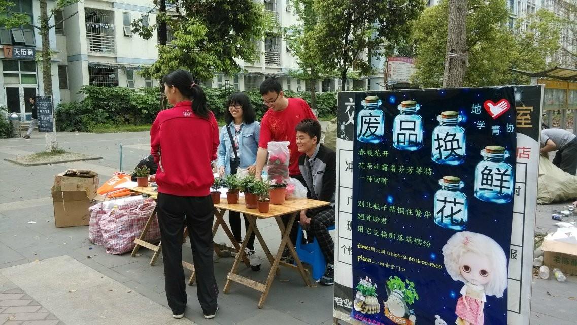 又是一年娉娉婷婷的春日,在这个莺飞草长,鸟语花香的季节,地学学院青年志愿者协会于4月19日、20日两天,在犀浦校区南区二食堂门口以及北区四食堂门口又一次开展了废品换鲜花活动。