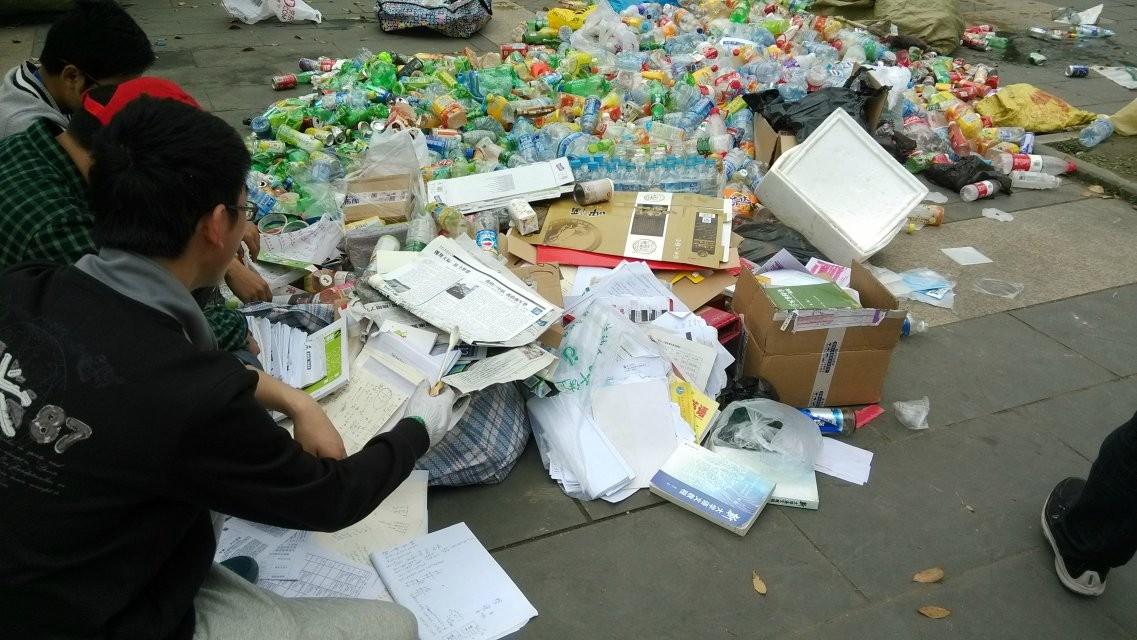 此次活动,地学青协还与物理青协取得合作,我们收集到的废品,为物理青协的变废为宝活动提供原材料,极大的增强了废品的再利用性,也增强了这两个学院志愿者之间的交流。