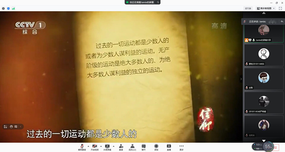 大家在线上会议观看了由、中央文献研究室、、联合摄制的历史文献纪录片《信仰》,该片分“只要主义真”、“壮志换新天”、“时代先锋行”3部分,以党的90多年历程为背景,采用“大背景、小细节”的表现手法,通过讲述革命、建设、改革各个历史时期的感人故事,深刻阐述了共产党人的核心价值观。