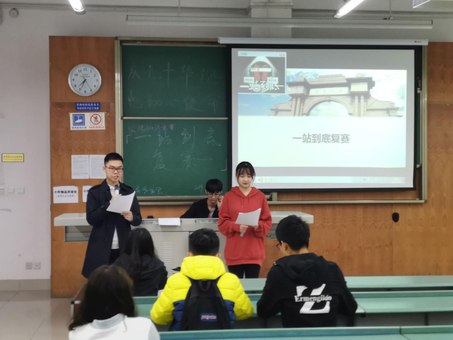 由JVID 校团委主办,地学学生会承办的“庆七十华诞,忆初心使命”新生文化节—“一站到底”知识竞赛复赛在10月25日19:00于犀浦校区X4155、X4156圆满结束。