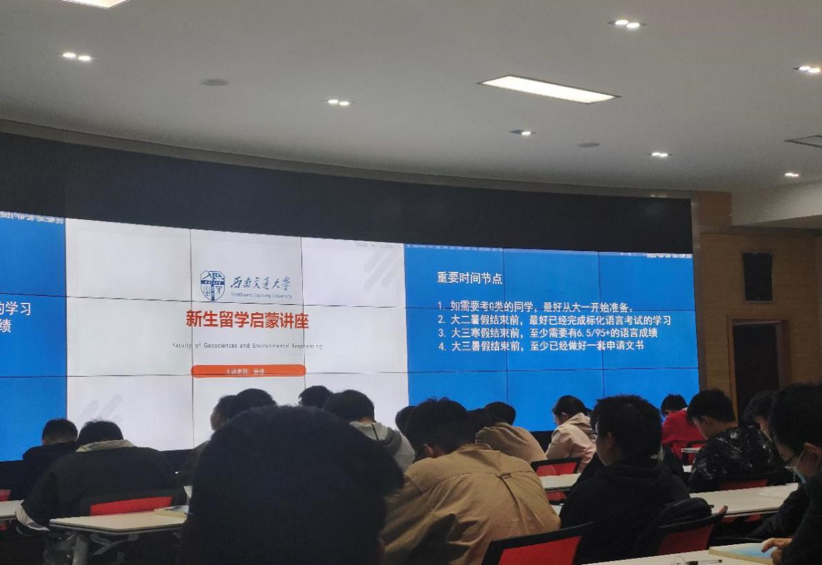 2021年10月28日晚17:30,地学学院“留海说”新生启蒙讲座于犀浦校区四号教学楼X4243教室圆满完成。活动由地学学院就业指导中心主办,此次活动旨在为有留学意愿和需求的本科生提供交流的平台,分享留学的知识和经验。本次讲座诚邀雅思官方课程认证讲师,毕业于英国巴斯大学TESOL专业,获得剑桥大学英语教学能力证书的徐佳老师,讲座主题为“飞跃重洋,人生一次有益的尝试”。