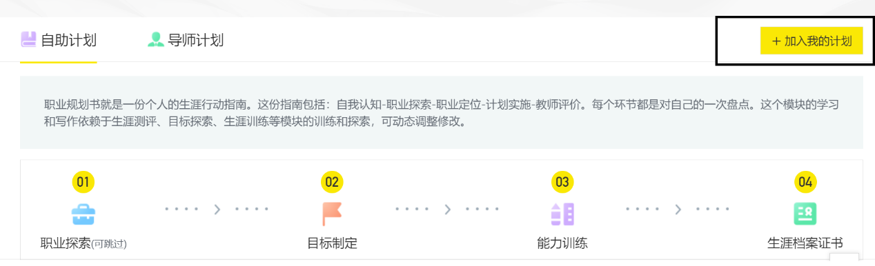 第三步:点击生涯档案,“加入我的计划”,然后开始自助计划: