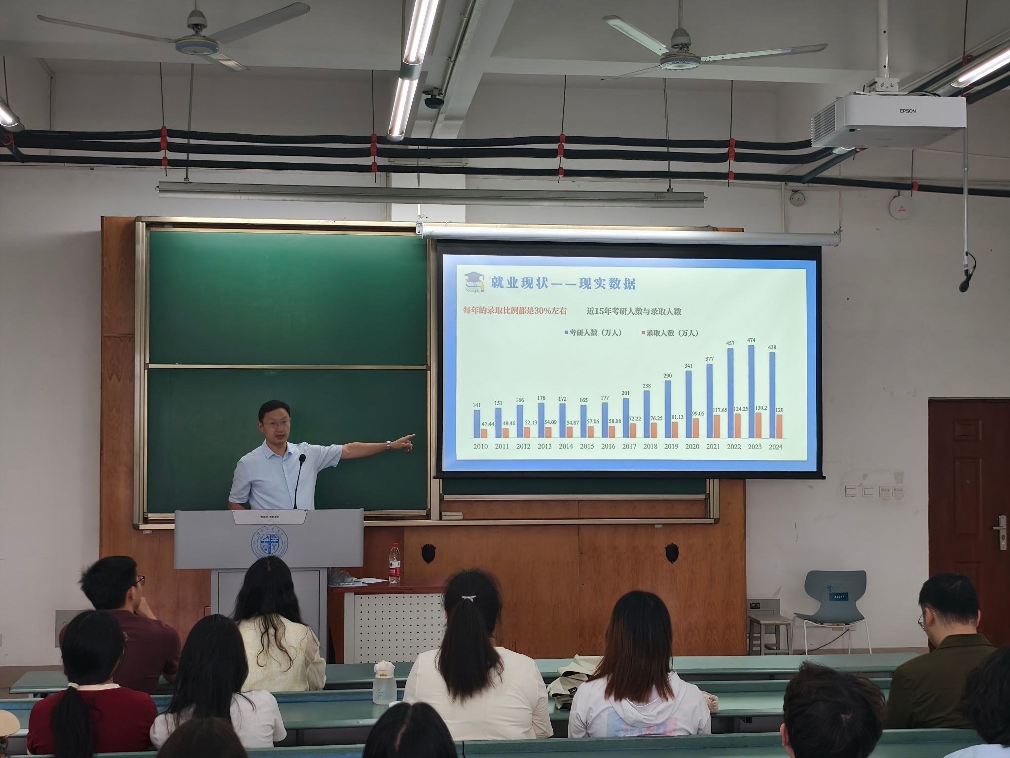 会议伊始,郑波以近15年的考研报名和录取数据为切入点,深入分析了当前的考研趋势。随后,他通过近两年高校毕业生的就业去向、毕业生总数以及青年失业率等关键指标,全面讲述了当前就业市场的严峻态势。