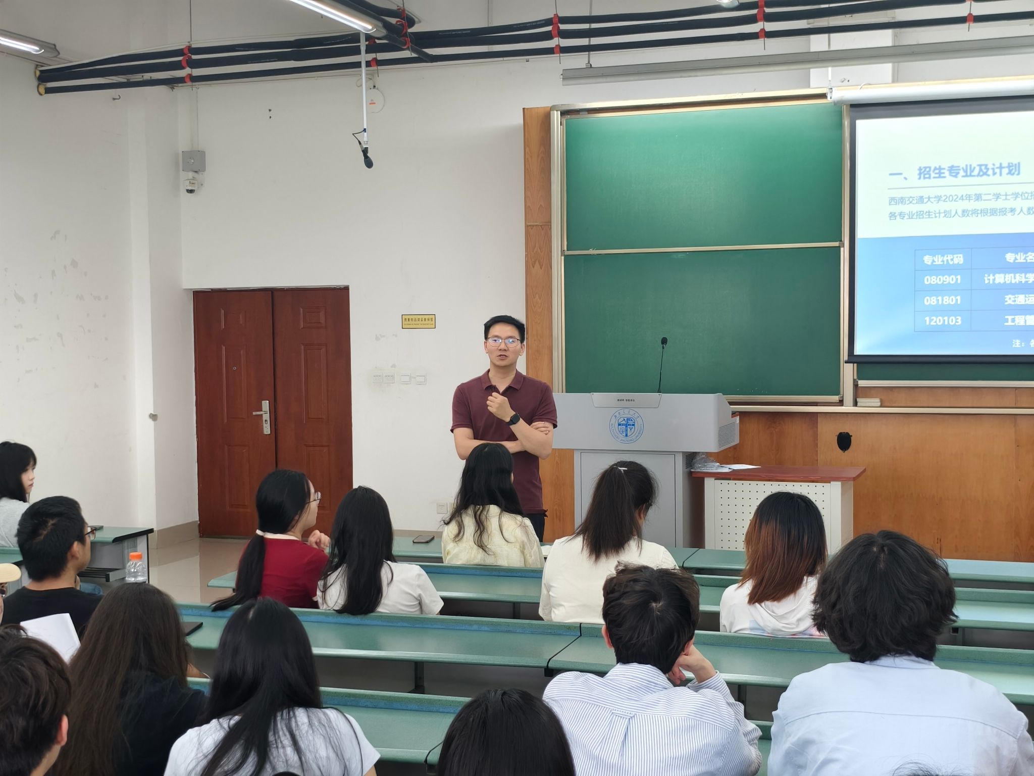 2024年第二学士学位招生简章。郑波指出,第二学士学位教育旨在培育具有创新精神和实践能力的复合型人才,他从校院实际出发,详细阐述了2024年第二学士学位的招生专业及计划,详尽介绍了报名条件、报名流程、考核办法和录取办法等内容,确保学生能够清晰了解并有序准备申请材料。同时,他还就学生关心的培养与管理等问题与同学们进行交流。最后,郑波希望同学们能够结合自身实际,多方了解,消除信息差,选择适合自己的道路,在不断探索中实现人生价值。