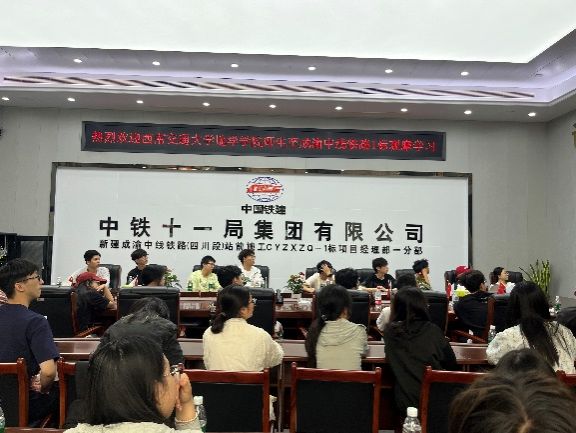 青年志愿者协会李心悦:参观中铁十一局成渝中线铁路项目部,让我见证了现代高铁建设的智慧与力量。精细化管理、智能化施工,自主研发,在复杂地质条件下推进工程,彰显了中国基建的实力与担当。项目部经理、总工程师与地学学院学生干部交流分享经验,将理论知识与实际施工相联系,让我们更清楚的认识到身上的责任与担当,努力学习专业知识,为国家基建事业贡献力量!