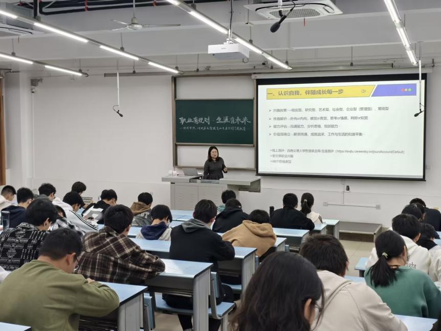 为加强新生对于未来的认识积极探索自我,深入思考未来四年的规划。地学学院于2024年11月11日在X2416教室开展了2024级全体新生生涯规划专题教育。活动由地学学院2024级本科辅导员文强主持,由王琼老师主讲,全体新生参与学习。