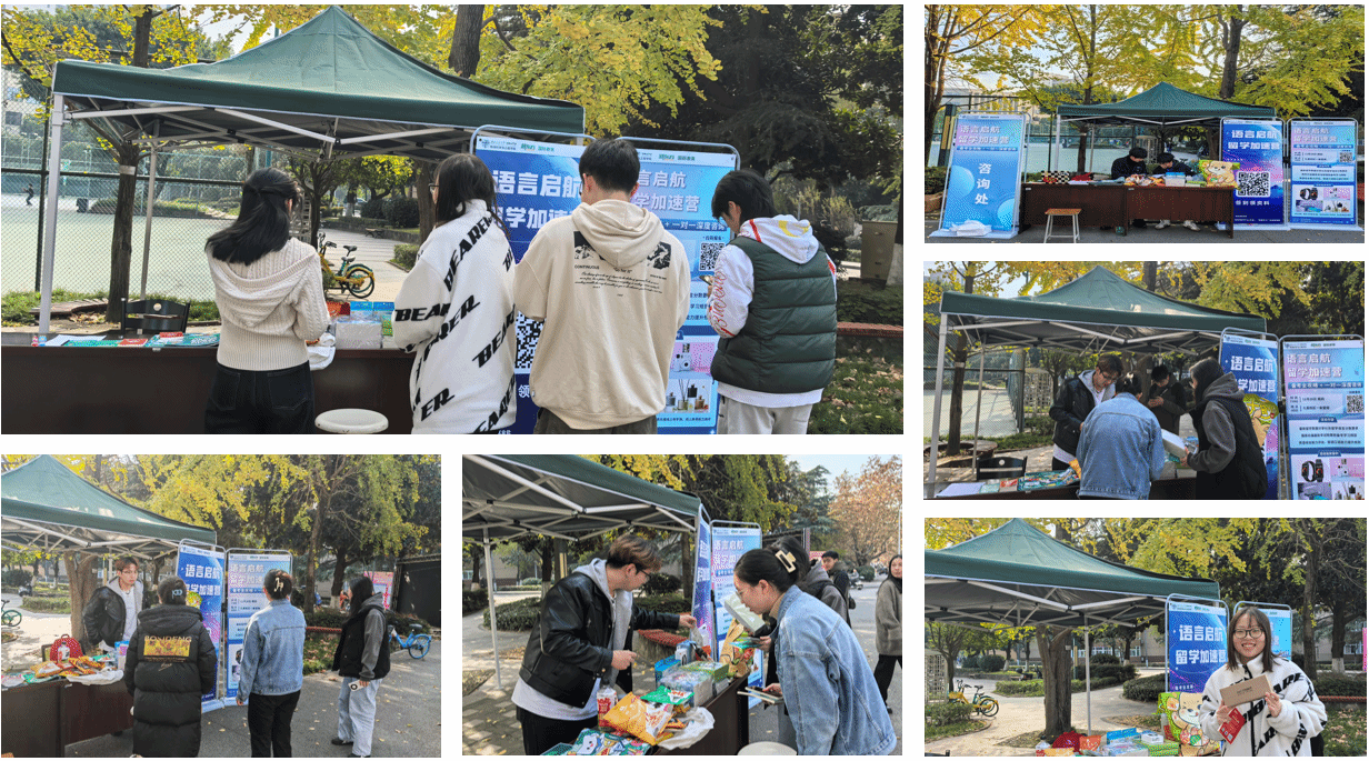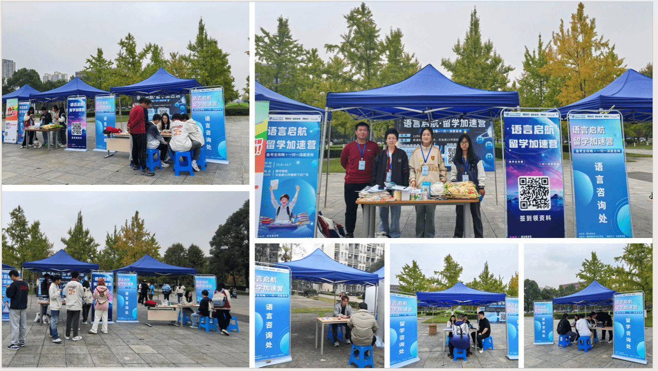 地学学院就业指导中心携手新东方国际教育,精心策划并成功举办了“语言启航·留学加速营”系列活动。活动分别在犀浦校区图书馆外、天佑斋15号楼前下沉广场(11月6日至11月7日)以及九里校区一食堂旁(11月28日周四)举行,吸引了18个学院的100余名同学积极参与。