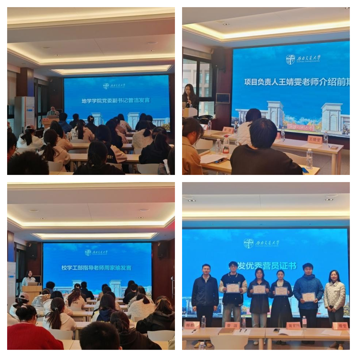结营仪式上,地学学院党委副书记曾洁、学校党委学工部学生资助管理中心周家瑜老师、学院团委书记杨都强老师对活动组织及成效予以高度肯定,希望校院两级进一步加强协调联动,搭建更多成长平台。同时寄语同学们“知用结合”,让本领在实践中扎根;“锚定方向”,以规划引领成长路径;“常怀感恩”,让温暖在传承中延续,以本次提升营为起点,在职业道路上稳步前行。